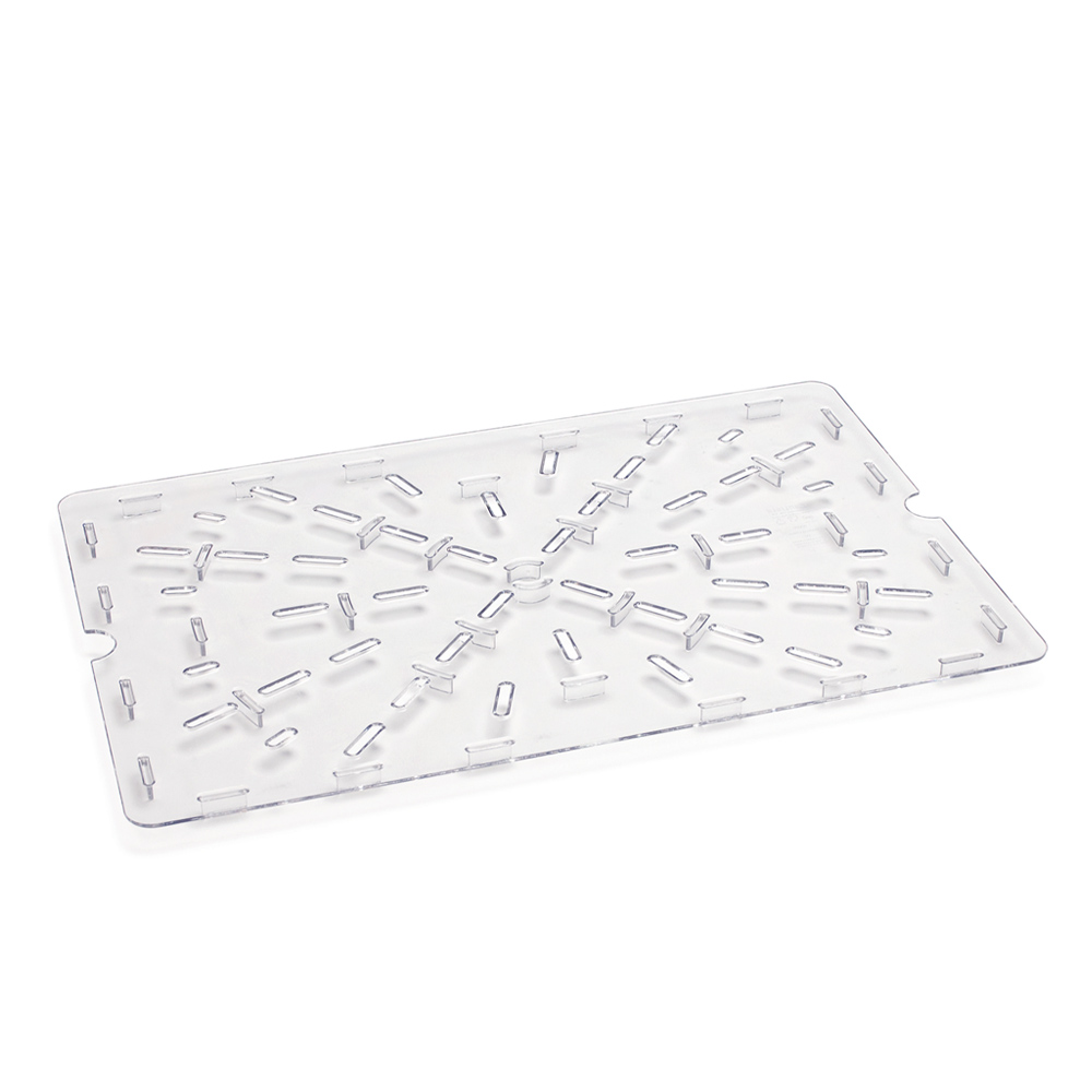 Fabricado en policarbonato de alta resistencia, con puntos de apoyo en su parte inferior, que mantiene separados los alimentos de los líquidos que desprenden.