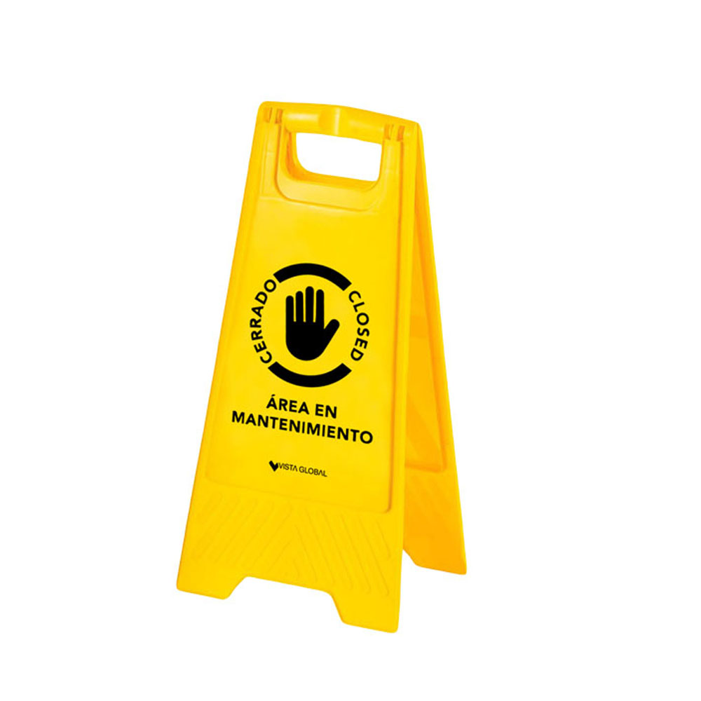 Se utilizan como complemento con los baldes con escurridor y garantizar seguridad en lugares de tráfico. Señal de prevención de piso cerrado. Fabricada en Polipropileno. 62 centímetros de alto. Color amarillo con texto y símbolos en color negro.