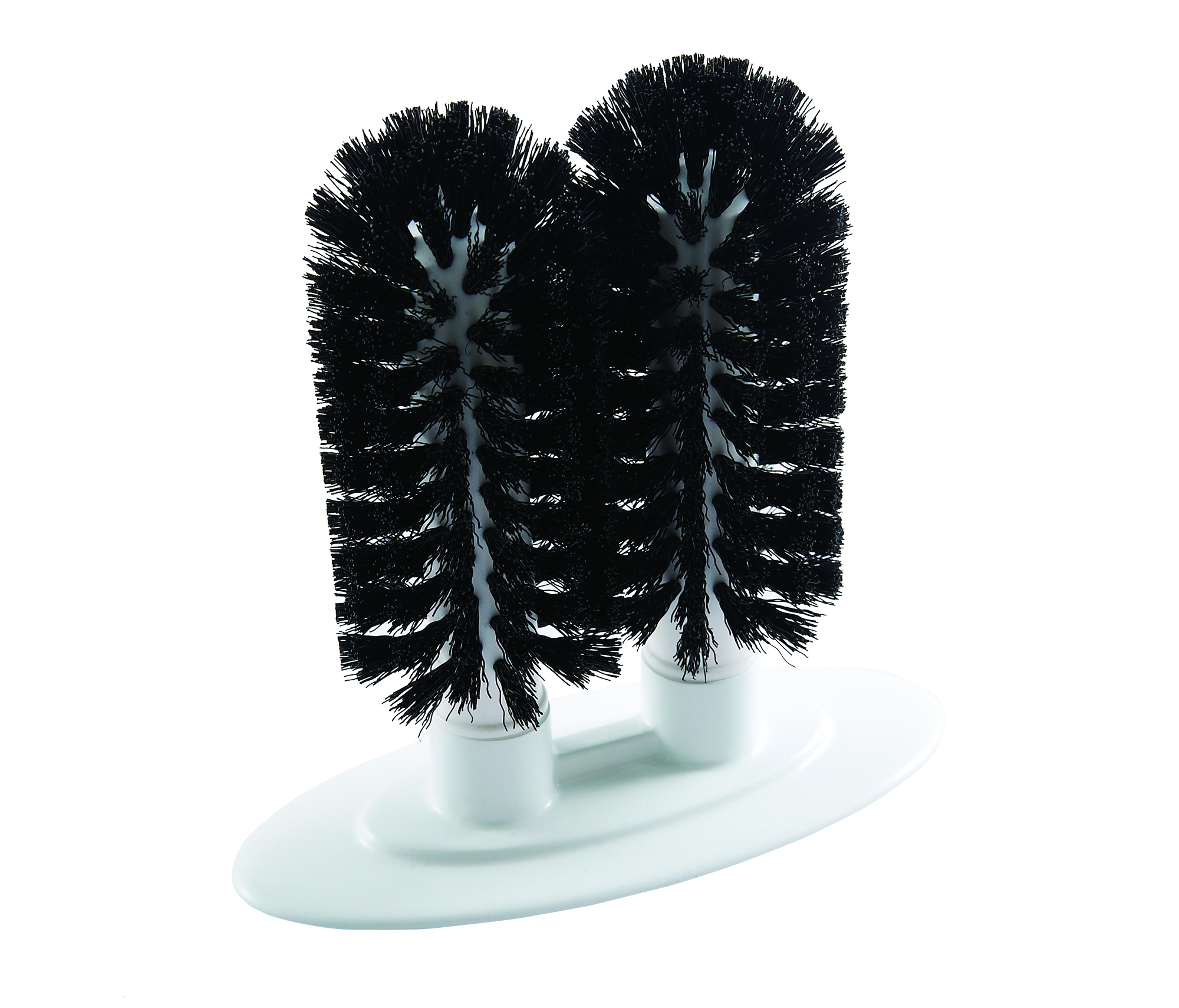 Diseñado para limpiar cristales. Su construcción en plástico ayuda a evitar que los cristales se astillen o se rompan. La base de plástico moldeado con succión positiva proporciona una sujeción firme en fregaderos y encimeras.
